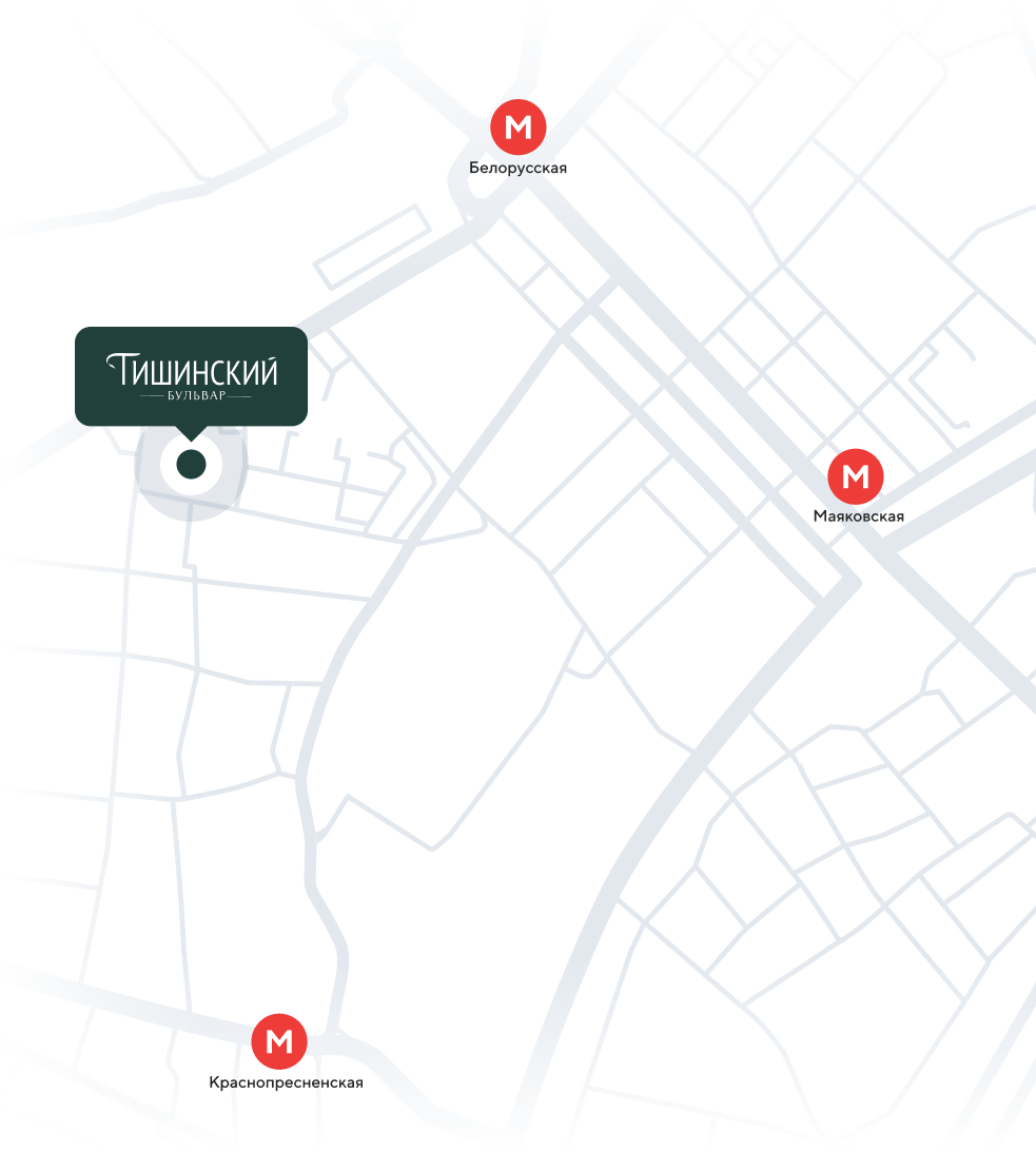 Офисы «Тишинский бульвар» — современное развитие золотого офисного треугольника между Белорусской, Маяковской и Краснопресненской. Вокруг — 30 крупных и престижных деловых центров. У места особая бизнес-энергетика: здесь находятся штаб-квартиры компаний, которые ценят статус, мобильность и комфорт.