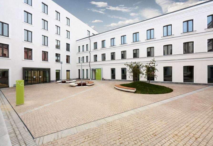 - офисы в трех разных форматах зданий — особняк, офисы с приватными террасами, офисы с общественной террасой на стилобате;